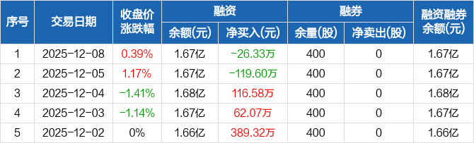 科美诊断:融资净偿还26.33万元,融资余额1.67亿元(12-08)