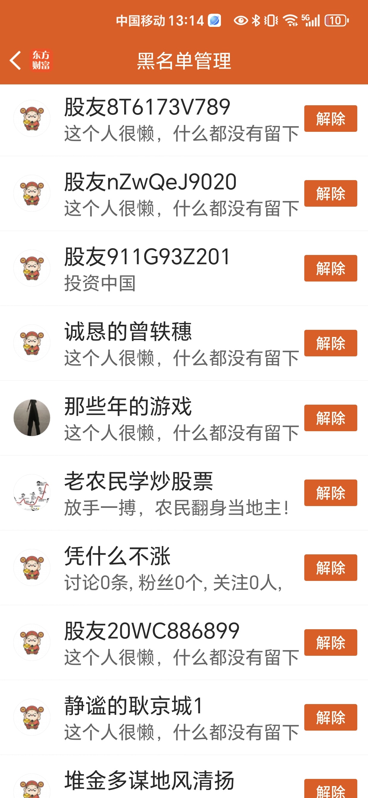 我讨厌一句话唱空的蹩脚无厘头们,他们就好比股吧里的苍蝇让样让人讨厌,为眼前的清静、为方便查看有价值的信息,这群人我己拉黑了一批。