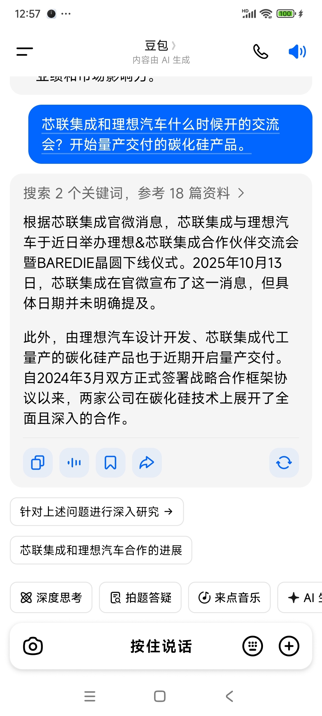$芯联集成-U(SH688469)$ 与理想合作成功出品了