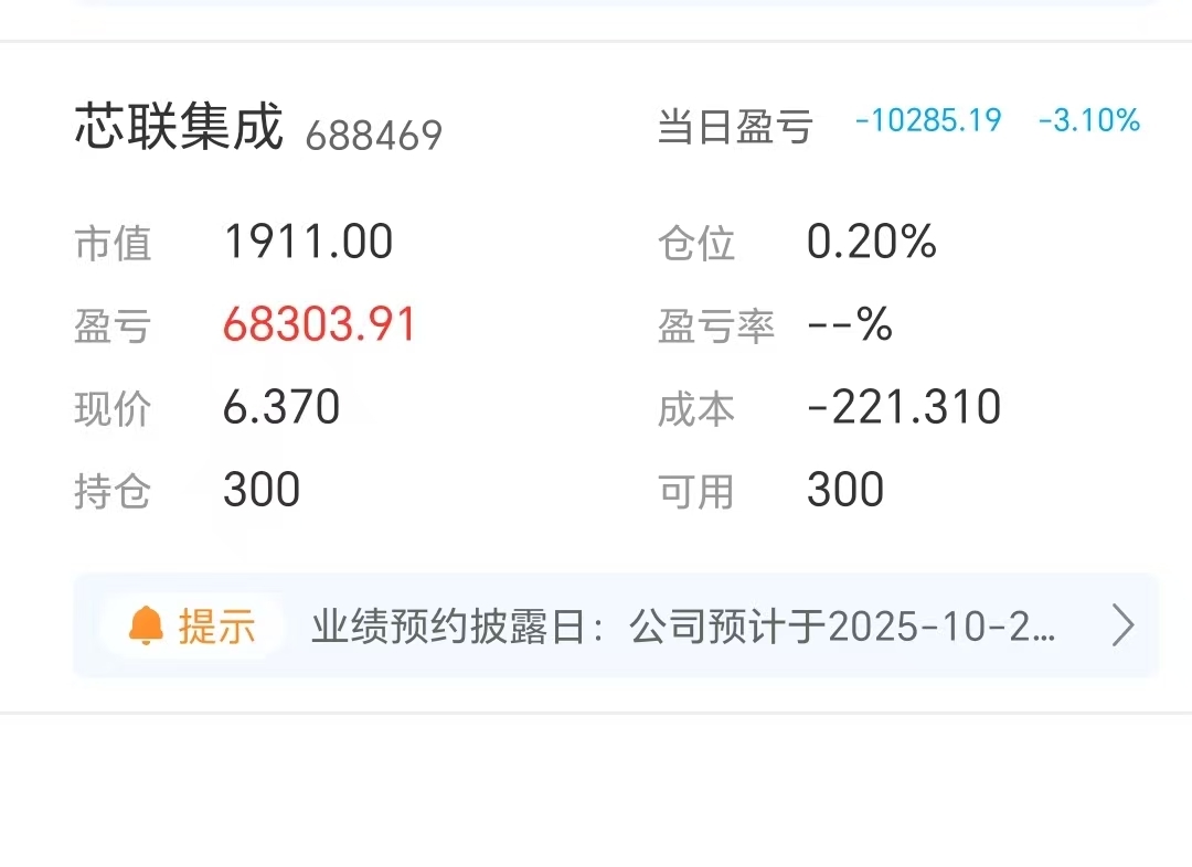$芯联集成-U(SH688469)$ 暂时不玩了,去年12月6日建仓今天抛了(留300股观望)擦去了部分利润。