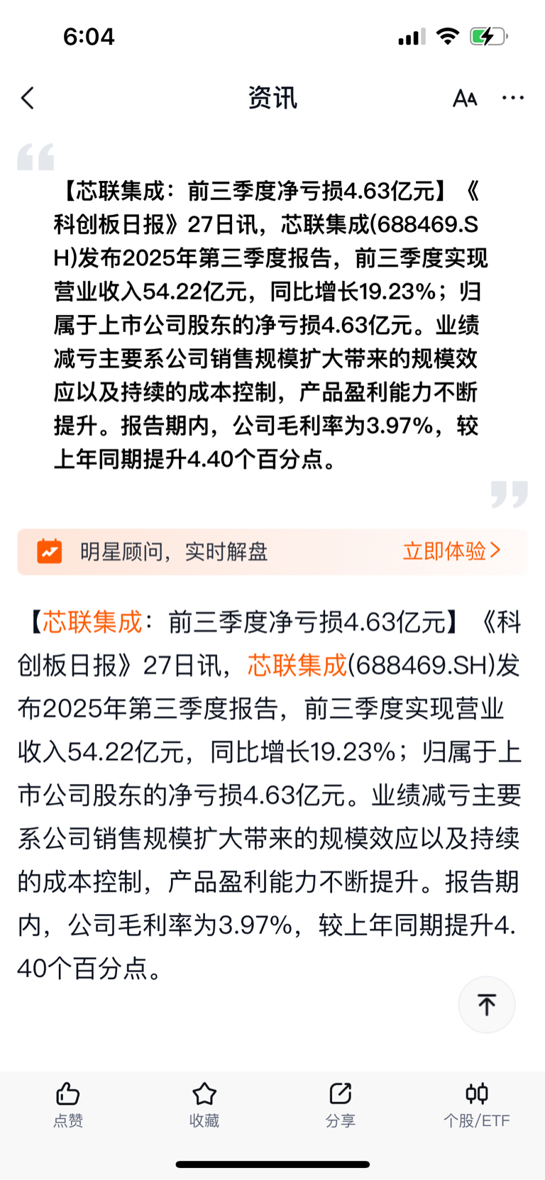 $芯联集成-U(SH688469)$ 整体算还行吧,毕竟没几年,前期投入大