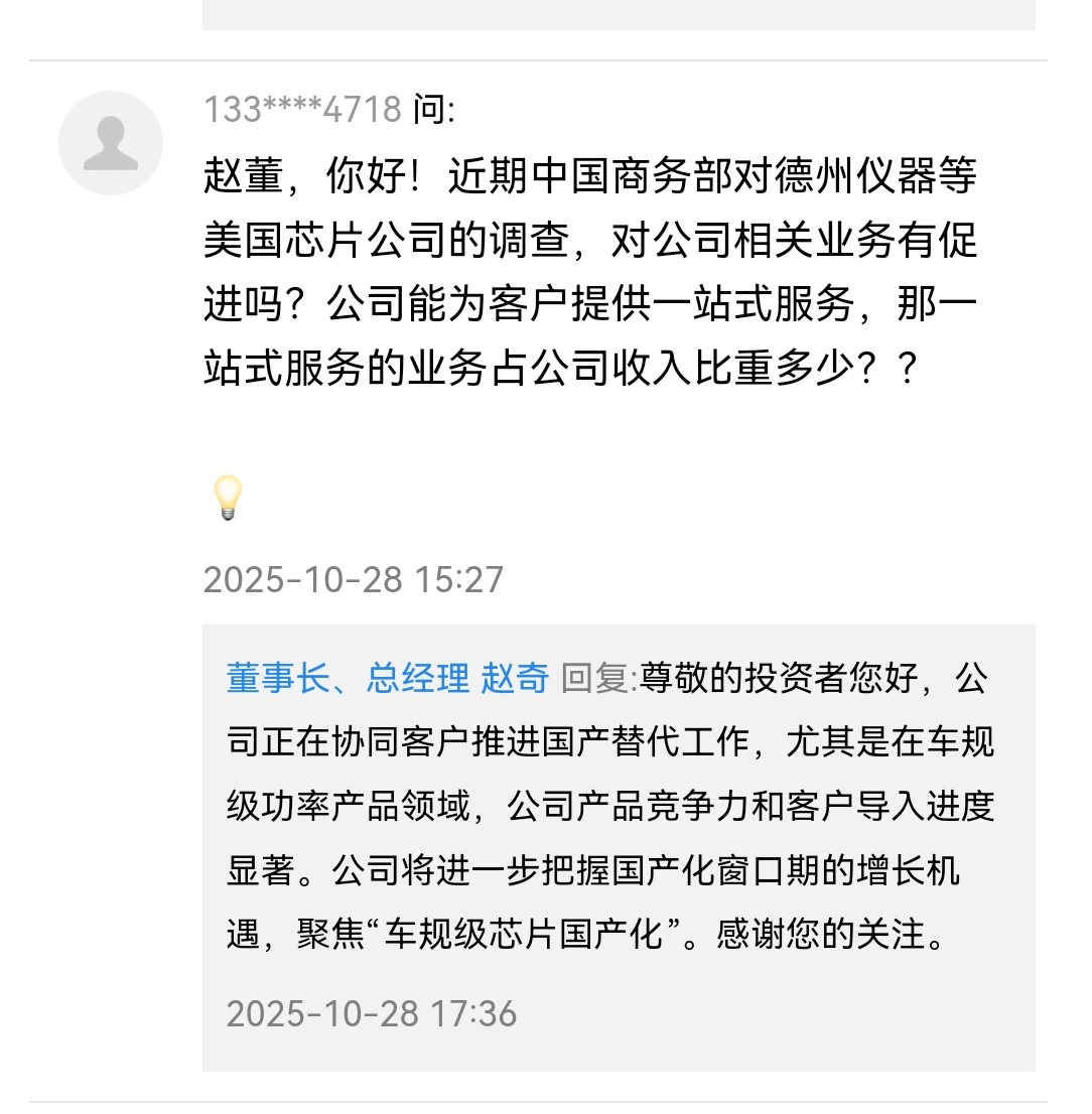 我提的二个问题都回答了,也精选了一些其他提问,应该是一个国产替代,供不应求,前途