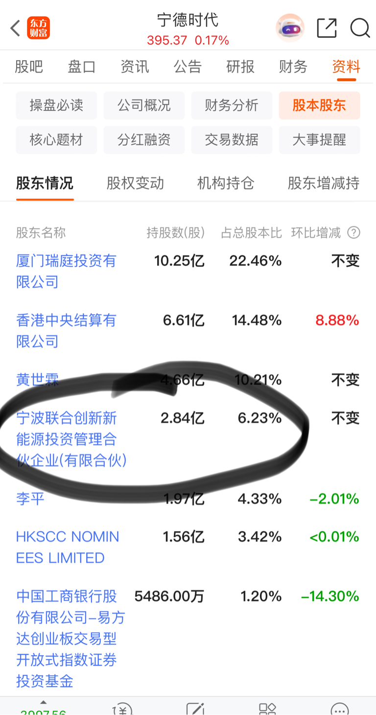 这笔看似冒险的投资,很快就迎来了曙光。2017年,仅投资两年后,宁波联创通过出让部分老股斩获6亿元,轻松收回全部成本。2018年宁德时代登陆创业板后,股价一路飙升成为万亿市值巨头,裴振华的财富也随之水涨船高。2020年一次减持就套现15亿元,加上多年分红,再到如今仍持有的6.23%股权(市值超1100亿元),这笔8900万元的投资,十年间实现了惊人的一千倍回报。