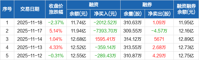 芯联集成:融资净偿还2012.52万元,融资余额11.74亿元(11-18)