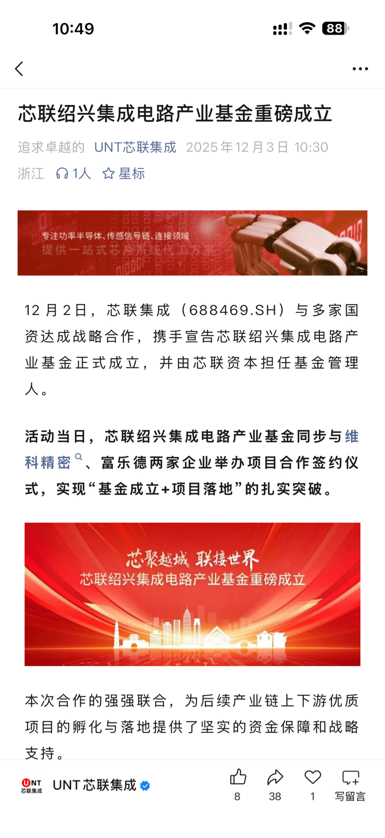 $芯联集成-U(SH688469)$ 再不大涨没天理了,利好都堆满了。