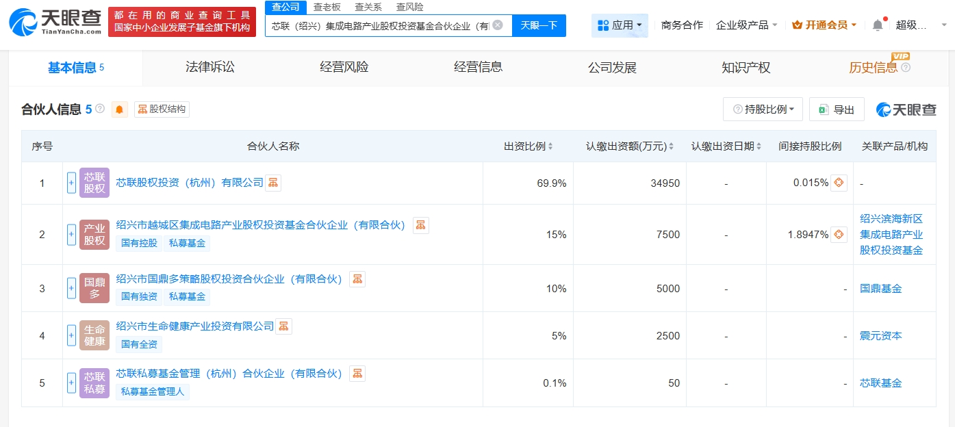 芯联集成等在绍兴成立集成电路产业基金