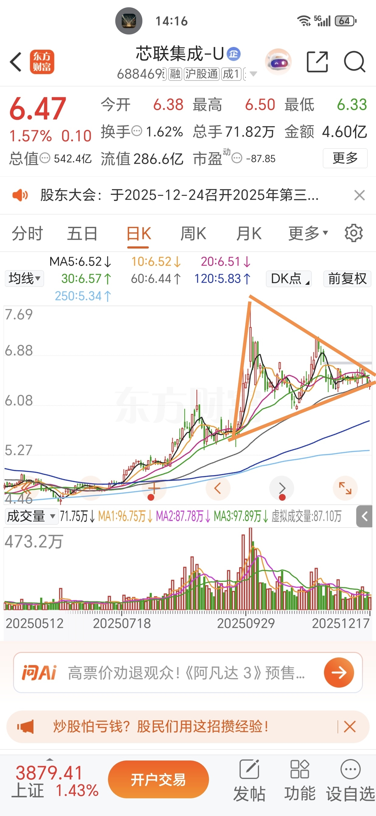 芯联集成自十月初调整至今己有2个多月,应是接近尾声,年底还有十个交易日,是持股跨