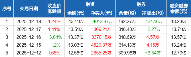 芯联集成:融资净偿还4012.97万元,融资余额13.11亿元(12-18)
