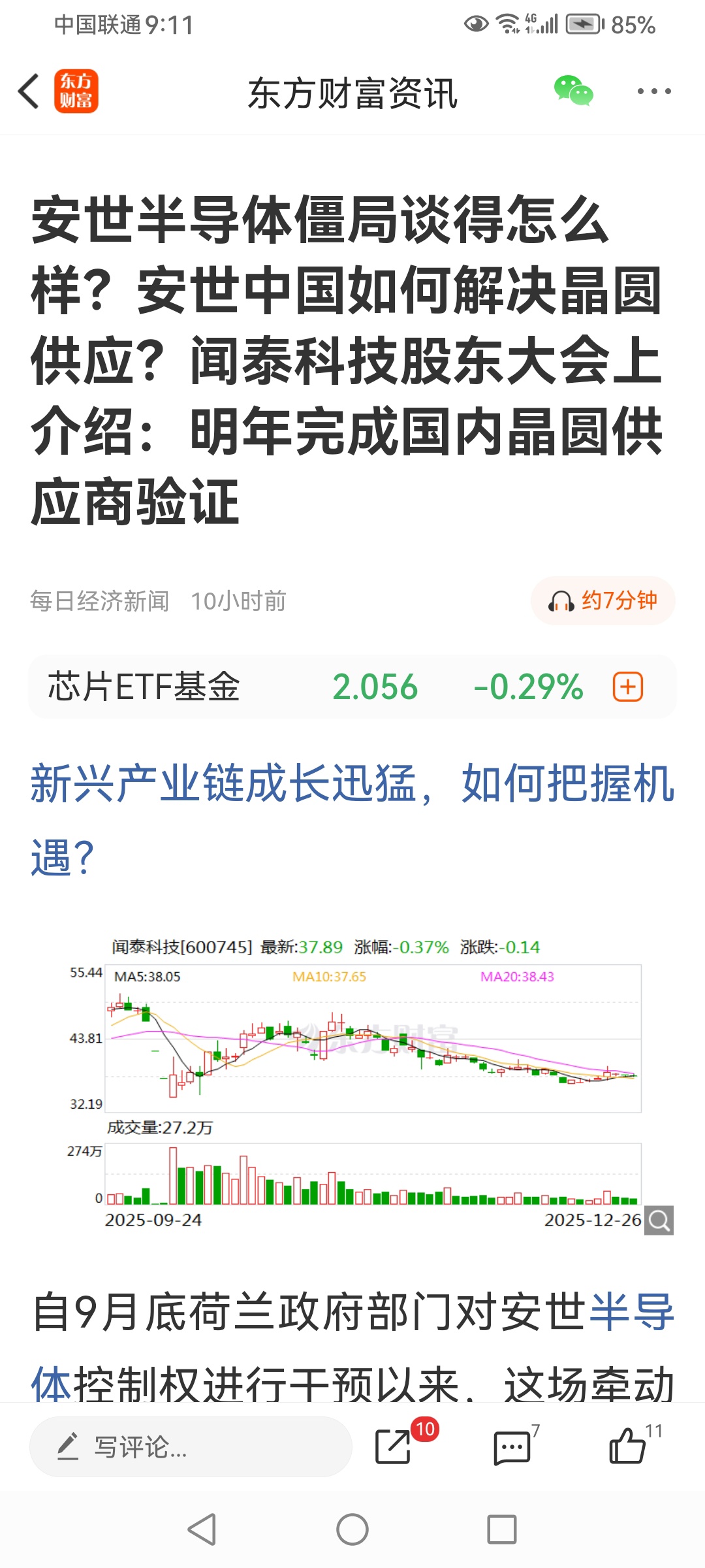 $芯联集成-U(SH688469)$ 2025年12月26日,闻泰科技董事长杨沐在当日下午召开的2025年第五次临时股东会上,向媒体披露了安世中国推进国内晶圆供应商验证的相关信息,预计2026年一季度至二季度完成验证 。多家权威财经媒体(证券时报e公司、每日经济新闻、财联社等)于12月26日晚间至27日凌晨对此进行了报道 。
