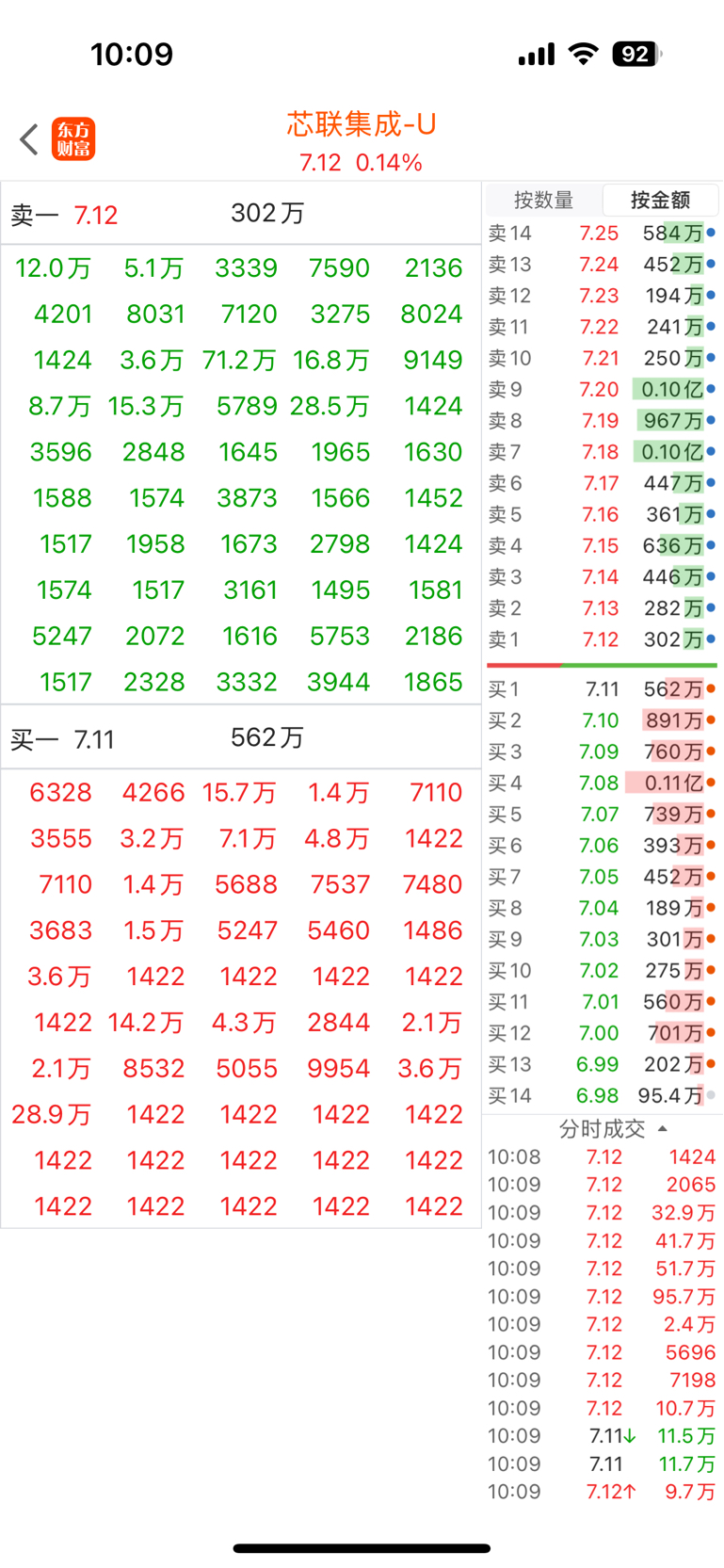 $芯联集成-U(SH688469)$ 上有大额压单,下有大额托单,过7.19真的非常有压力