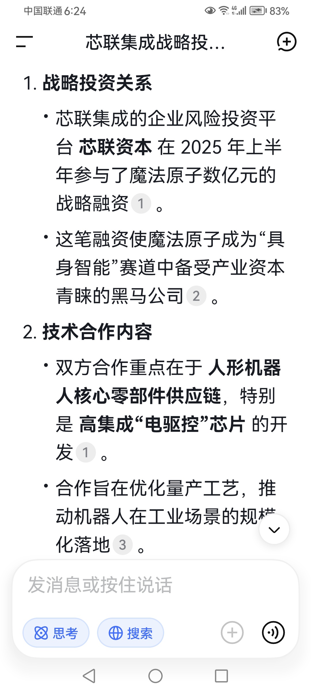 2025年5月魔法原子官方融资公告,明确与芯联集成战略合作开发高集成电驱控芯片,