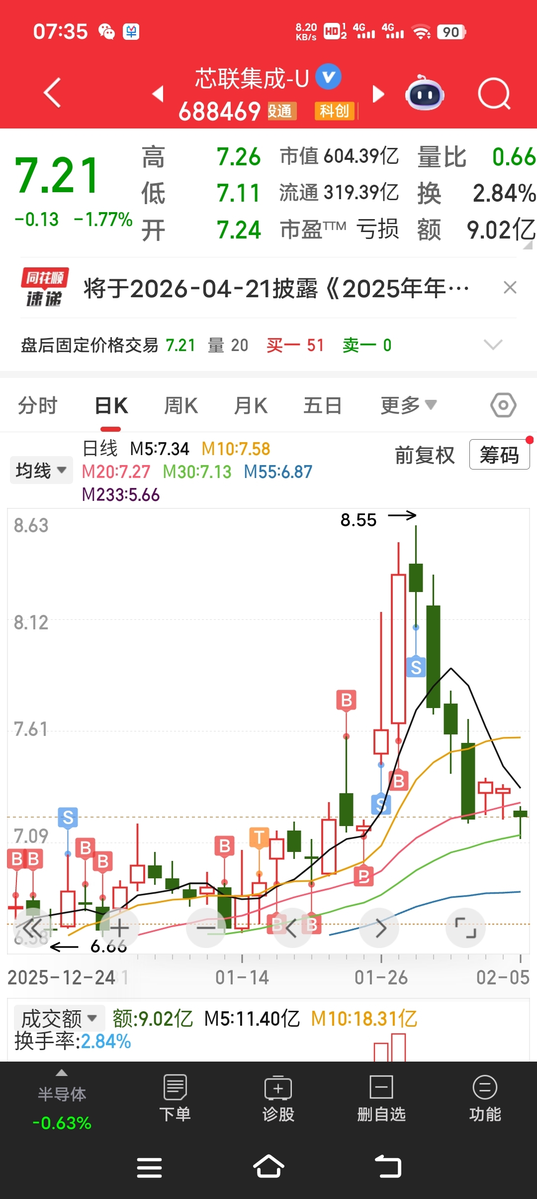 $芯联集成-U(SH688469)$ 追涨的人太多,8.39的时候清仓了,等年前最后两天再进,主力不会让看好的人过好年的,这个价格不算超低估