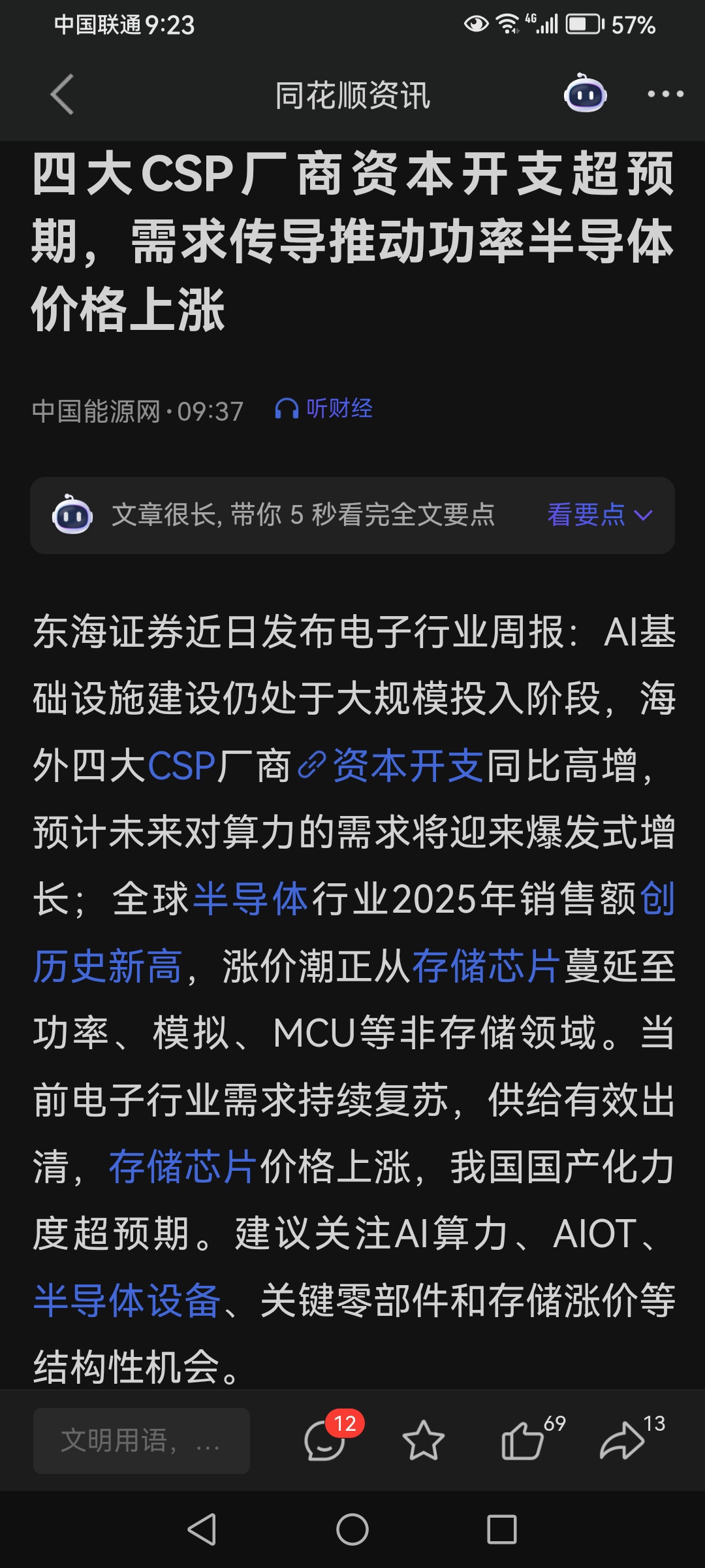 $芯联集成-U(SH688469)$ AI基础设施建设仍处于大规模投入阶段,海外四大CSP厂商资本开支同比高增,预计未来对算力的需求将迎来爆发式增长;全球半导体行业2025年销售额创历史新高,涨价潮正从存储芯片蔓延至功率、模拟、MCU等非存储领域。