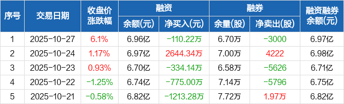 阿特斯:融资净偿还110.22万元,融资余额6.96亿元(10-27)