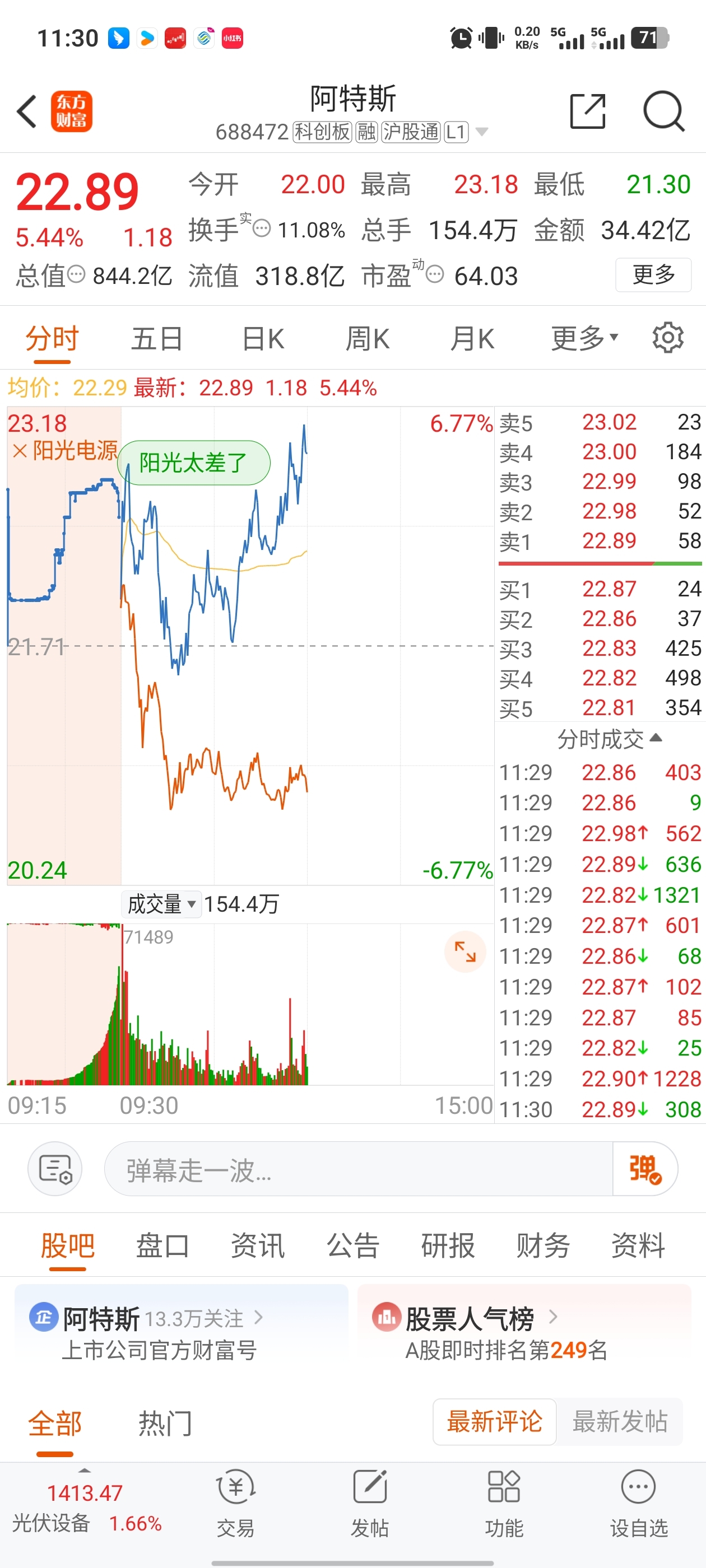 $阿特斯(SH688472)$ 阳光太差了了,一直被拖下来