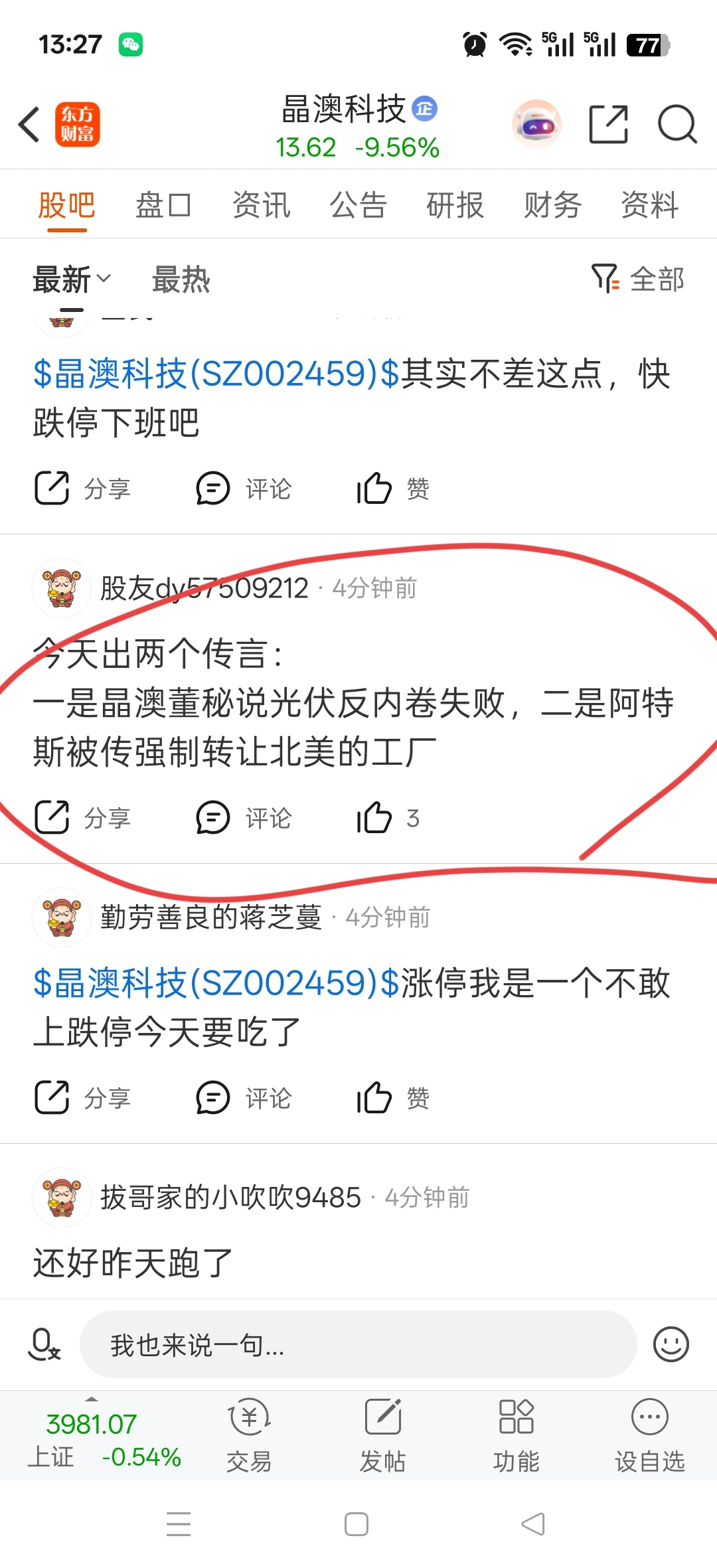 温馨提示: 1.根据《证券法》规定,禁止编造、传播虚假信息或者误导性信息,扰乱证券市场;2.用户在本社区发表的所有资料、言论等仅代表个人观点,与本网站立场无关,不对您构成任何投资建议。用户应基于自己的独立判断,自行决定证券投资并承担相应风险。《东方财富社区管理规定》