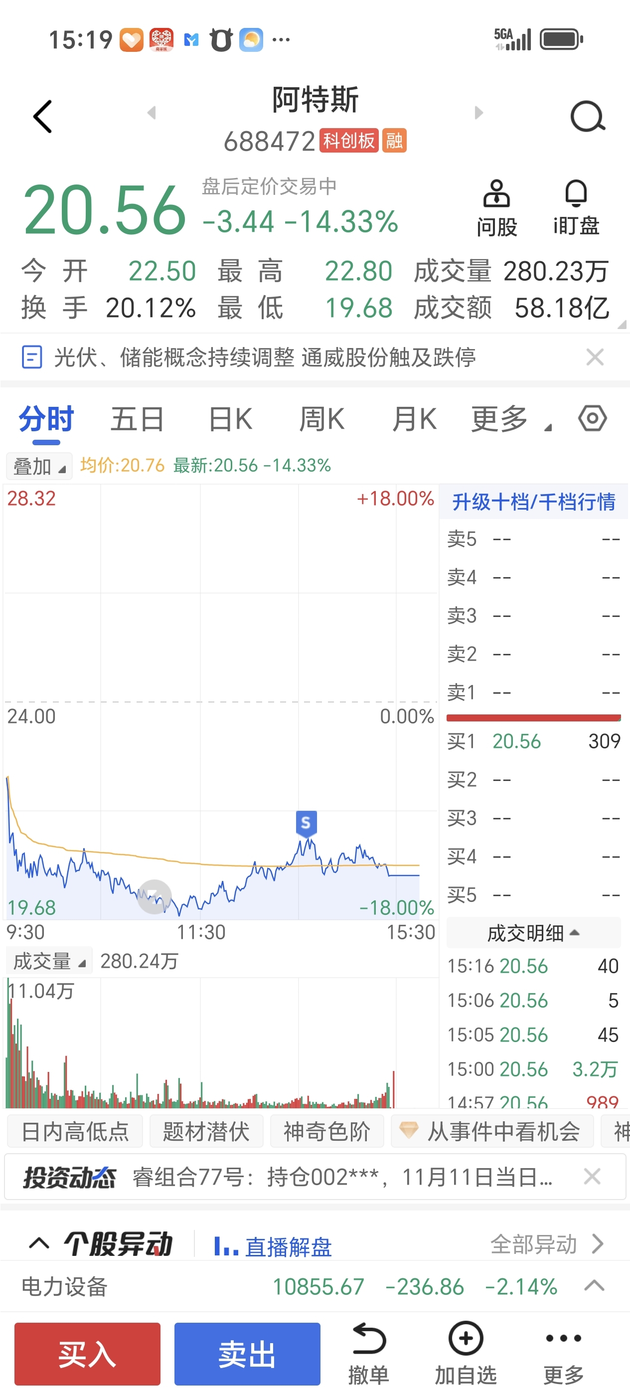 $阿特斯(SH688472)$ 昨天最低点买的,今天亏6个点割肉