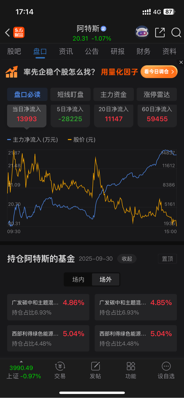 $阿特斯(SH688472)$ 哪个兄弟有暗盘的,有点疑惑为啥资金跟股价剪刀叉,麻烦告知