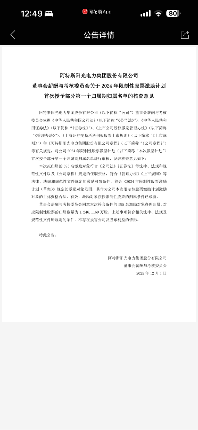 阿特斯股权激励公告最新595名激励对象,归属1,246.1169万股,阿特斯这波
