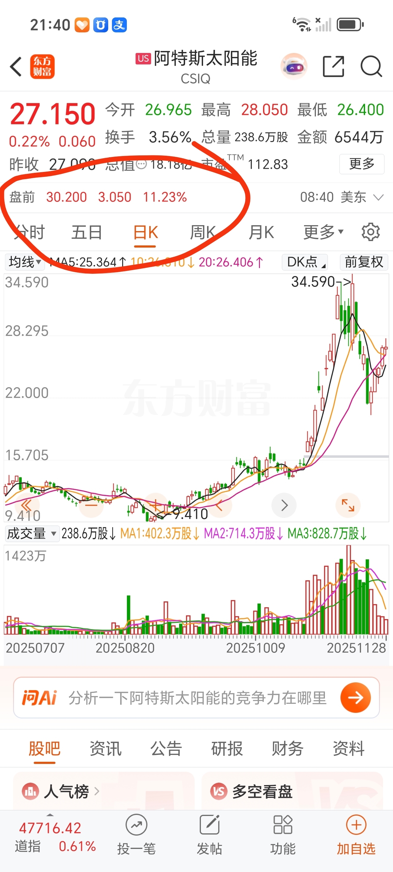 $阿特斯(SH688472)$ 真正的反内卷就是走出去,美股盘前涨了11个点