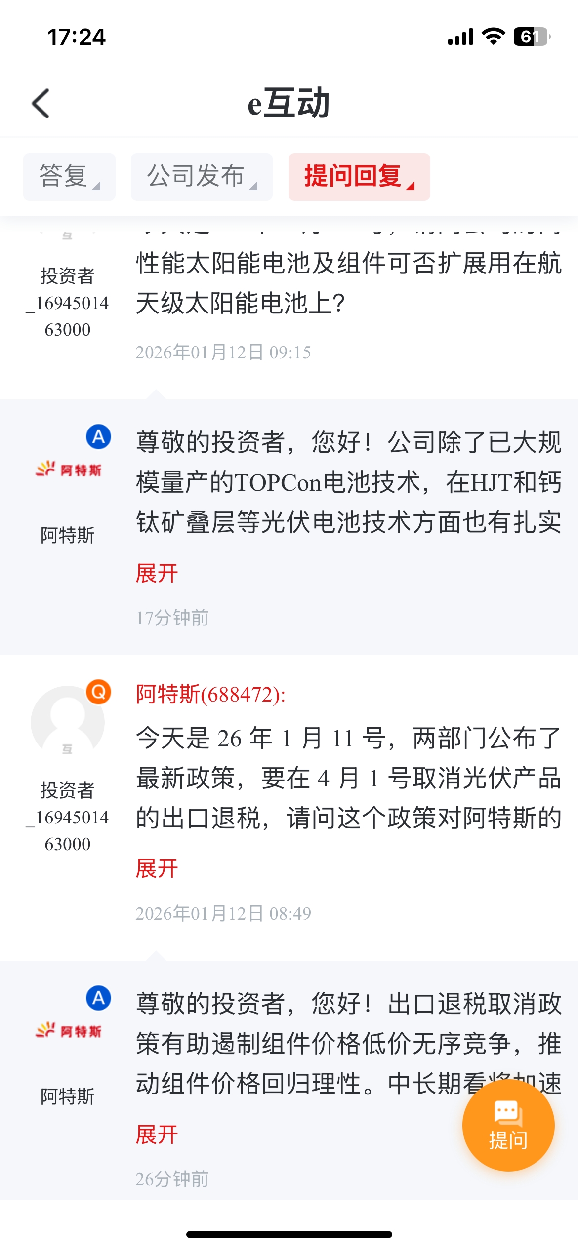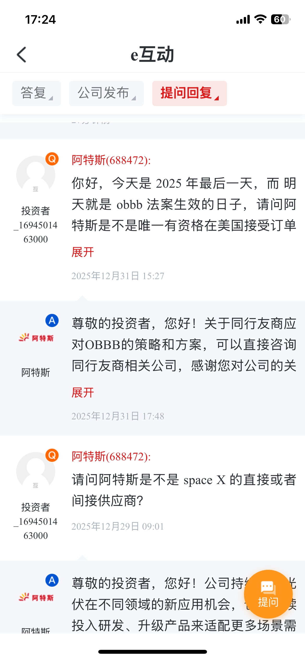 $阿特斯(SH688472)$ 作为投资者,我积极提问,也算是尽了绵薄之力