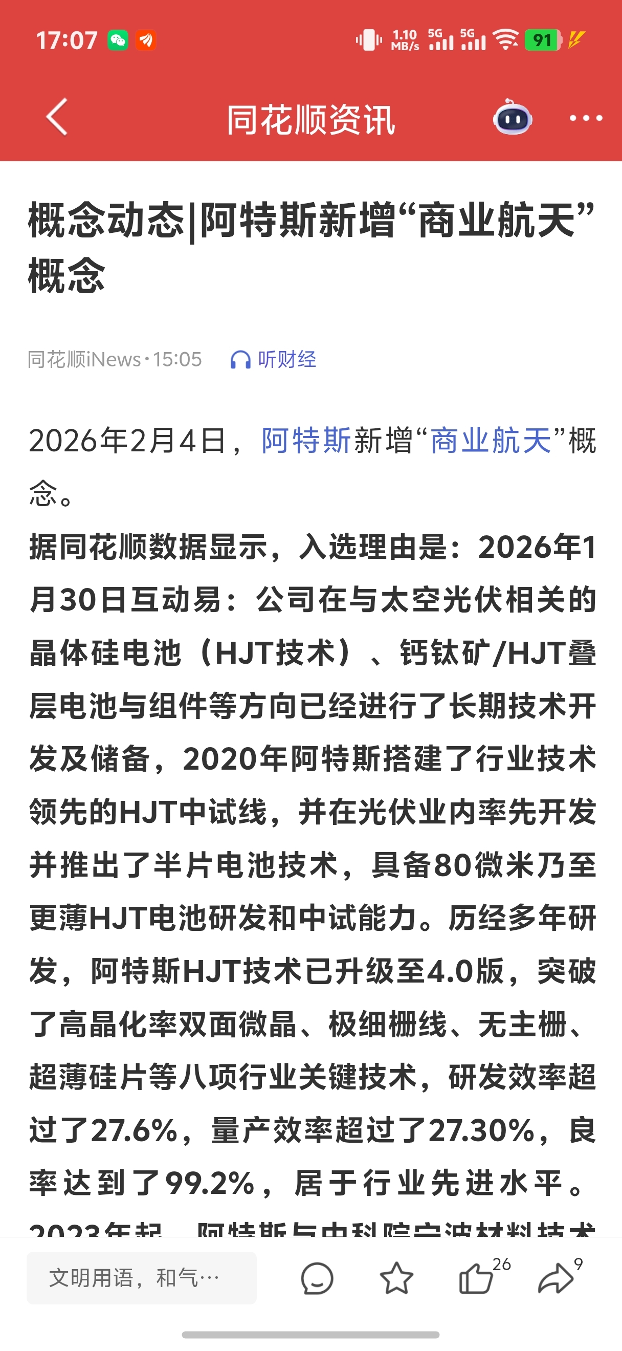 同花顺已经添加商业航天概念,纯正的太空光伏龙头票,阿特斯、特斯拉,名字也是高度相