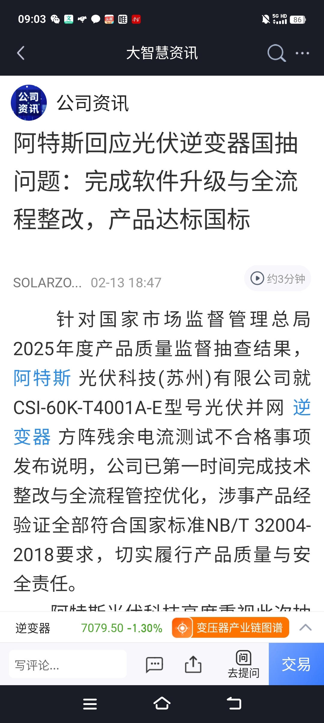 $阿特斯(SH688472)$ 光伏逆变器问题利空结束了
