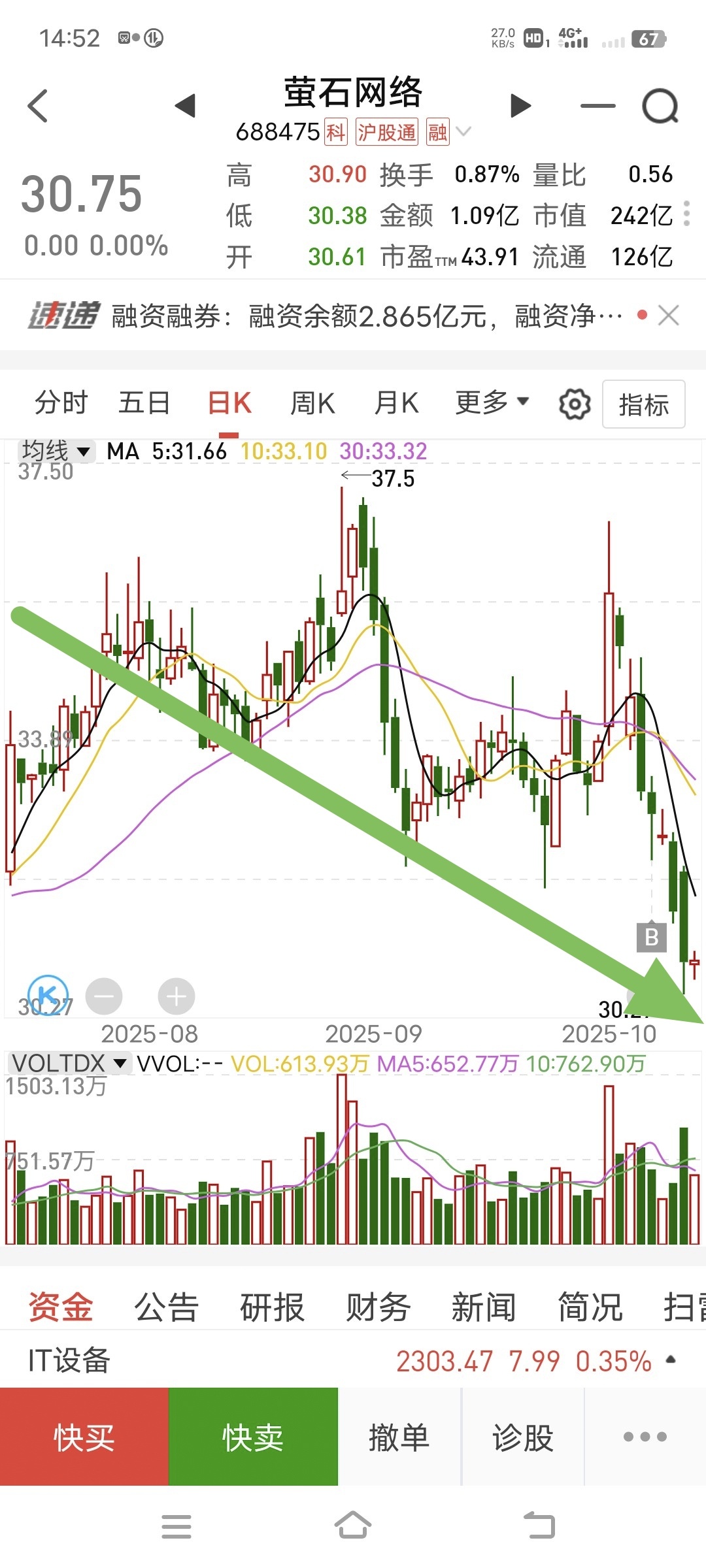 $萤石网络(SH688475)$ 下降通道已成趋势,次波段下跌为主