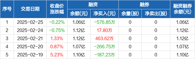 晶升股份:融资净偿还576.85万元,融资余额1.06亿元(02-25)