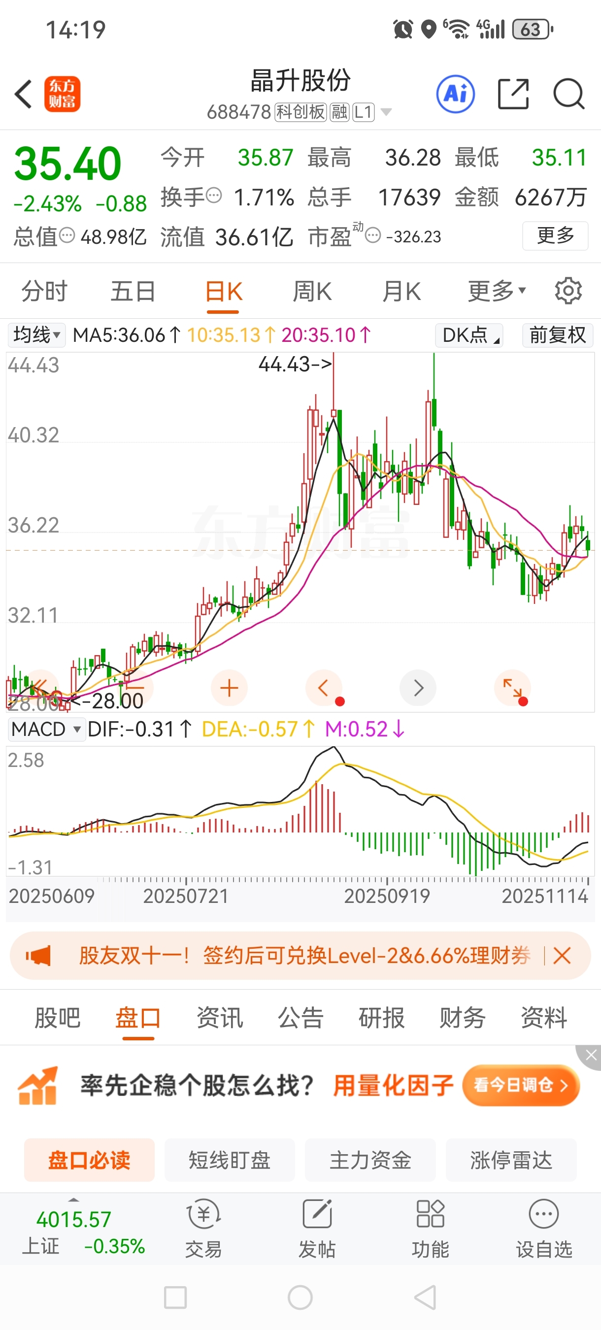 $晶升股份(SH688478)$ 个人认为这里如果快速下杀大胆加仓。金叉叠加5日10日线强支撑。