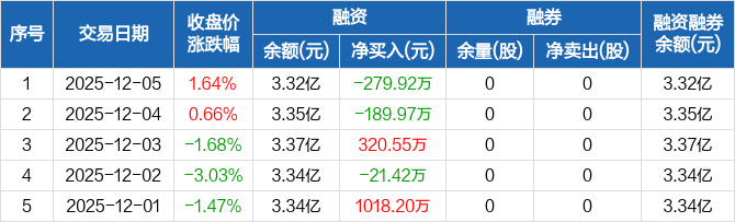 晶升股份:融资净偿还279.92万元,融资余额3.32亿元(12-05)