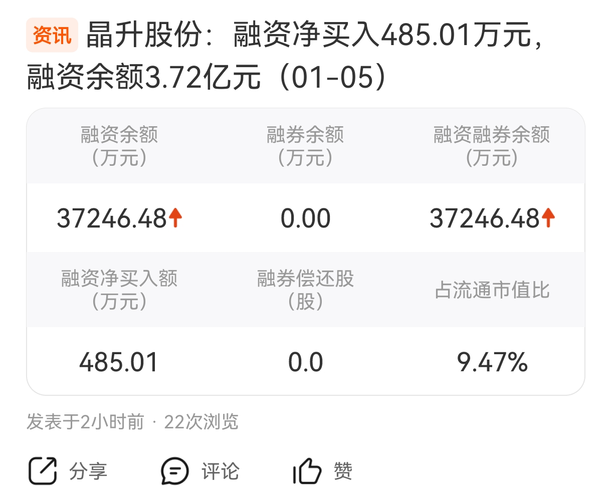 $晶升股份(SH688478)$ 融资余额在高位我就不信你不想涨上去。