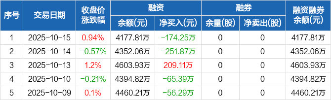 友车科技:融资净偿还174.25万元,融资余额4177.81万元(10-15)