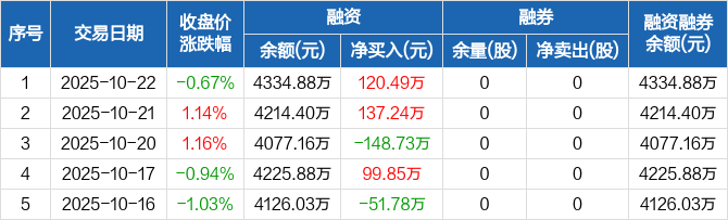 友车科技:融资净买入120.49万元,融资余额4334.88万元(10-22)