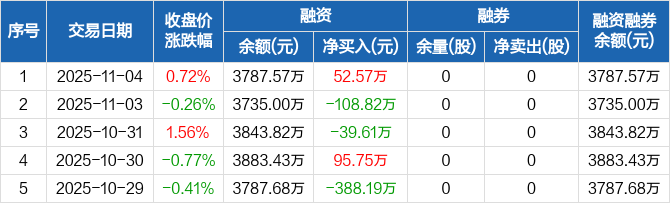 友车科技:融资净买入52.57万元,融资余额3787.57万元(11-04)