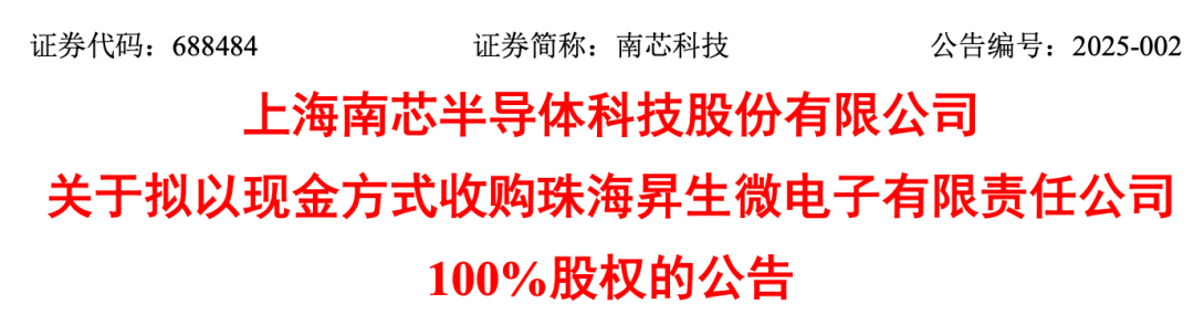南芯科技拟现金收购昇生微