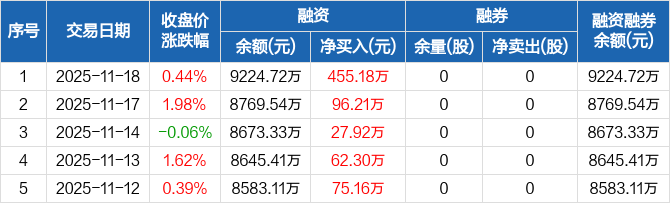 九州一轨:连续8日融资净买入累计942.88万元(11-18)