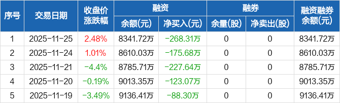 九州一轨:连续5日融资净偿还累计883万元(11-25)