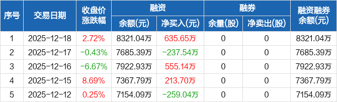九州一轨:融资净买入635.65万元,融资余额8321.04万元(12-18)