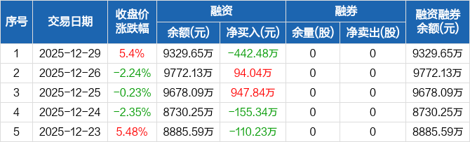 九州一轨:融资净偿还442.48万元,融资余额9329.65万元(12-29)