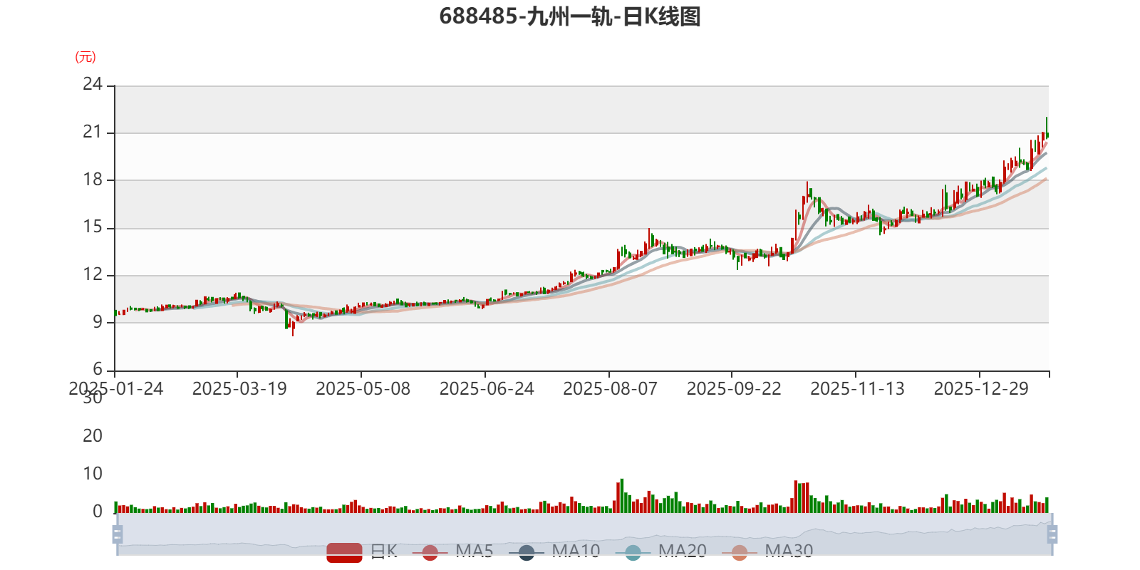 中证智能财讯九州一轨(688485)1月23日晚间披露2025年度业绩预告,预计2025年归母净利润亏损1200万元至1800万元,上年同期盈利1115.2万元;扣非净利润亏损1350万元至1950万元,上年同期盈利618.08万元。以最新收盘价计算,市净率(LF)约2.49倍,市销率(TTM)约10.22倍。