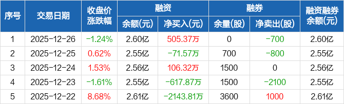 龙迅股份:融资净买入505.37万元,融资余额2.6亿元(12-26)