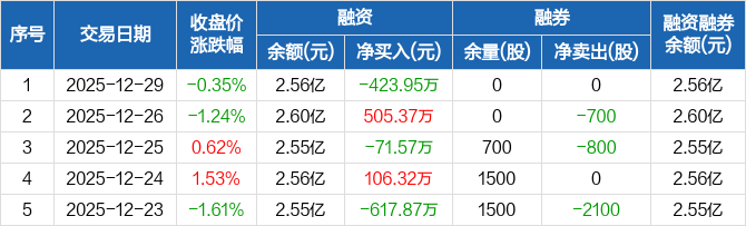 龙迅股份:融资净偿还423.95万元,融资余额2.56亿元(12-29)