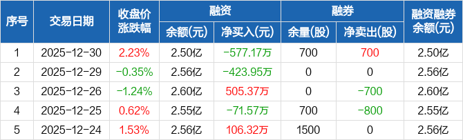 龙迅股份:融资净偿还577.17万元,融资余额2.5亿元(12-30)