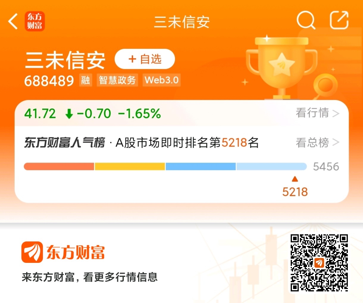 $三未信安(SH688489)$ 5400多家上市公司,热度5200多名,扯啥量子,抗量子,你说超光速,也要有人敢信啊
