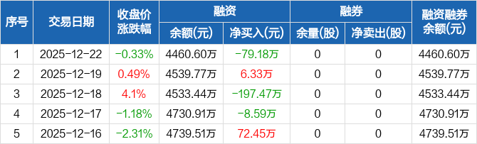 清越科技:融资净偿还79.18万元,融资余额4460.6万元(12-22)