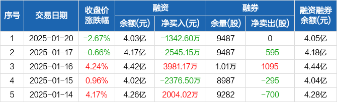 源杰科技:融资净偿还1342.6万元,融资余额4.03亿元(01-20)