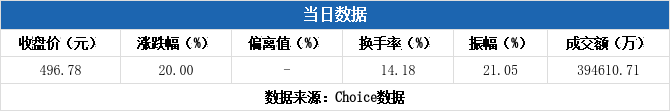上交所2025年10月21日交易公开信息显示,源杰科技因属于日涨幅达到15%的前5只证券、有价格涨跌幅限制的连续3个交易日内收盘价格涨幅偏离值累计达到30%的证券而登上龙虎榜。源杰科技当日报收496.78元,涨跌幅为20.00%,换手率14.18%,振幅21.05%,成交额39.46亿元。