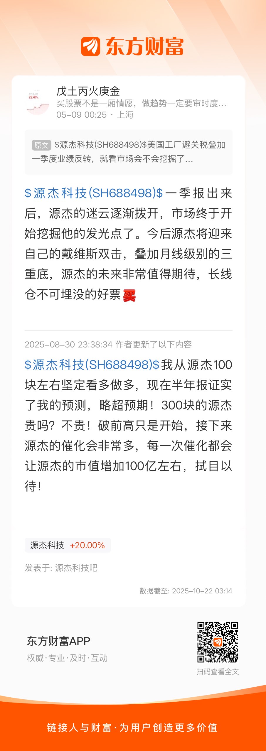 $源杰科技(SH688498)$一季报出来后,源杰的迷云逐渐拨开,市场终于开始挖掘他的发光点了。今后源杰将迎来自己的戴维斯双击,叠加月线级别的三重底,源杰的未来非常值得期待,长线仓不可埋没的好票