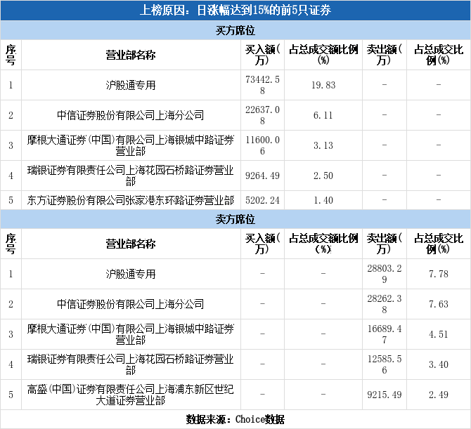 沪股通现身龙虎榜,源杰科技上涨16.44%(11-06)